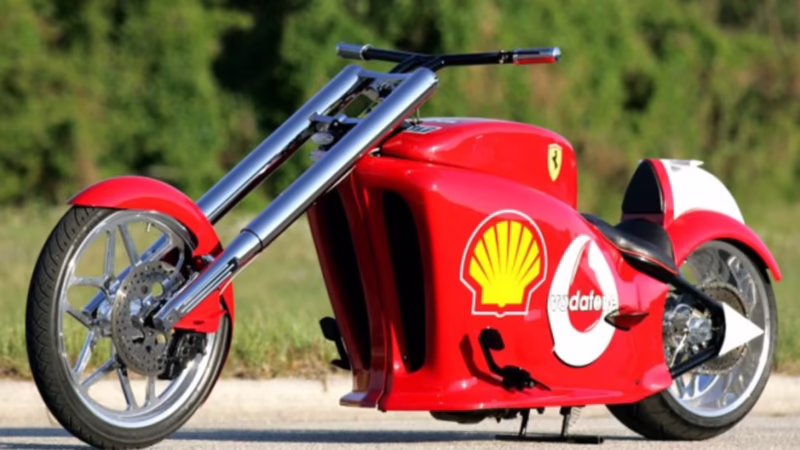 - Ruedas Distintivas: Es común ver una rueda delantera más grande y delgada, con una horquilla extendida, combinada con una rueda trasera muy ancha, lo que acentúa su parecido con las motocicletas custom.