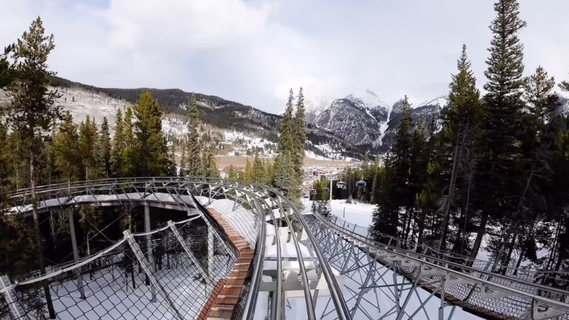 La Rocky Mountain Coaster ofrece un recorrido de casi 1.8 kilómetros. Es una distancia considerable para una atracción de este tipo. Su velocidad máxima, 40 km/h, se siente rápida cuando estás al aire libre, descendiendo por una ladera con una pendiente media del 10.9%. Es una emoción controlada, segura y accesible.