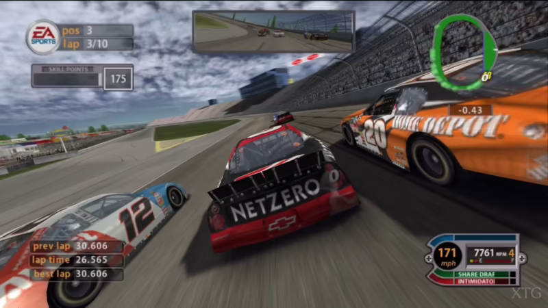 Los desarrolladores de EA Tiburon lograron capturar la esencia de las carreras de stock cars. El rebufo (drafting) no era solo una característica, sino una herramienta estratégica fundamental para adelantar en las largas rectas. La gestión de los neumáticos y el combustible durante las carreras largas añadía una capa de profundidad táctica, obligando al jugador a pensar no solo en la siguiente curva, sino en la estrategia global de la carrera. Las paradas en boxes eran momentos de alta tensión, donde una decisión rápida o un error del equipo podían costar la victoria. Todo esto, combinado con una inteligencia artificial competente que luchaba por cada posición, hacía que cada carrera fuera un evento impredecible y emocionante.