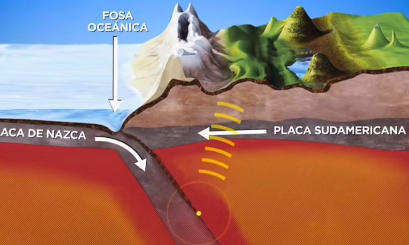 Esta batalla no es silenciosa. La velocidad relativa de convergencia entre ambas placas es de aproximadamente 8 centímetros por año. Puede parecer poco, pero en la escala de tiempo geológico, es una velocidad vertiginosa. Esta fricción y presión constantes acumulan una cantidad inmensa de energía en las rocas. Cuando esa energía se libera de forma súbita, se producen los terremotos. Además, a medida que la placa oceánica se hunde en el manto terrestre, las altas temperaturas y presiones provocan que se funda, generando magma que asciende a la superficie y alimenta la cadena de volcanes que salpican la Cordillera de los Andes, parte del famoso Cinturón de Fuego del Pacífico.