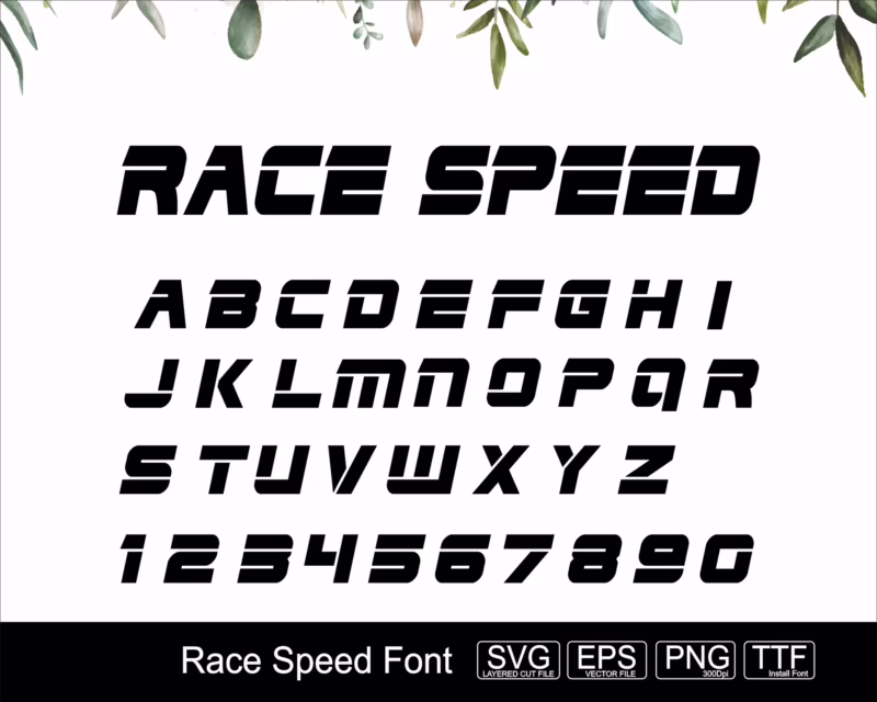 Las fuentes de carreras a menudo reemplazan elementos redondeados con formas afiladas y angulares. Las esquinas se vuelven puntiagudas, las curvas se transforman en cambios abruptos de dirección y las terminaciones de las letras finalizan con cortes dramáticos en lugar de acabados suaves. Estas características evocan el diseñoaerodinámico de los propios coches de carreras, donde cada elemento está diseñado para reducir la resistencia y maximizar la velocidad. La agudeza visual se traduce directamente en velocidad percibida.